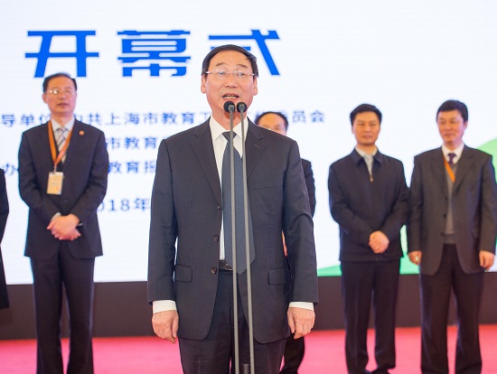 在中共上海市教育卫生工作委员会、上海市教育委员会的指导下,由上海教育报刊总社主办的“与美同行 成就未来——全国第五届大学生艺术展演活动暨2018第十五届上海教育博览会新时代美育展”于4月16日在上海展览中心开幕。上海市教育卫生工作委员会党委副书记、上海市教育委员会副主任高德毅,上海市教委副主任倪闽景,我校党委书记楼巍和各参展高校、区教育局有关领导一同出席了开幕式。