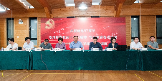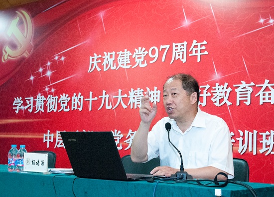 2018年7月5日下午,我校“庆祝建党97周年,学习贯彻党的十九大精神,写好教育奋进之笔”中层干部、党务干部专题培训班在图书馆4楼进行第二次学习培训活动。本次培训聚焦全面从严治党主题,由听取报告和工作部署两部分内容组成,学校全体中层干部和各基层党组织正副书记、支委成员参加了培训活动。