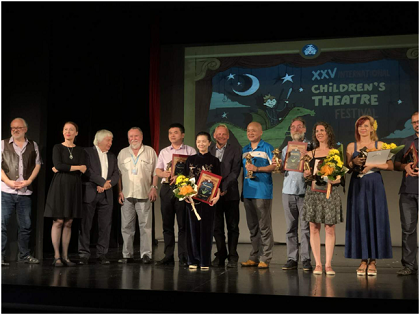 演出圆满结束后,于当地时间9月21日晚20:00,在苏博蒂察国家艺术剧院举行了此次国际儿童戏剧艺术节的闭幕式。我校演出节目荣获第25届国际儿童戏剧艺术节特别节目奖,黄暾炜副院长上台领奖并接受了当地记者的采访,黄暾炜副院长表示:此次受邀参加国际儿童戏剧艺术节非常高兴,与来自世界各地的艺术家们在此相遇,加深了了解,促进了交流,对我们的学生来说也是一次难得的学习和展示机会,希望今后有更多的机会交流学习。也期待各国艺术家能够到中国交流展示,参加上海的国际性文艺活动,相互交流,切磋技艺。学生们对此次出访也感到收获颇多,通过此次演出,向来自世界各地的参加活动的人们展示了中国传统文化的魅力,增强了文化自信,同学们表示一定不忘初心,继续前行,传承好中国的传统文化,让更多的人了解中国传统文化,他们也将用最精彩的演出来回报这些热爱木偶艺术的中国乃至世界各国的观众。(文:石文慧、施晴怡 编辑:榕树)