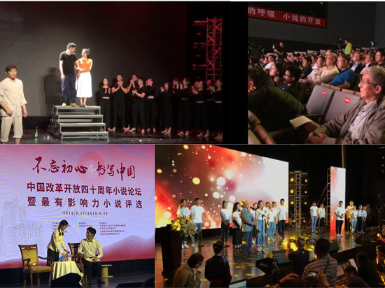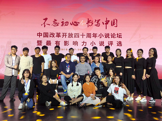 9月27日,“不忘初心·书写中国”——改革开放四十周年中国小说论坛暨最有影响力小说颁奖典礼、第九届“茅台杯”《小说选刊》年度大奖颁奖典礼在青岛大剧院同台举行。我校继续教育学院2018级表演班全体同学受邀参加了此次颁奖典礼的演出,演出团队由继续教育学院党支部副书记亓季松老师,专业指导教师、影视编剧及导演赵武老师,2018级表演班班主任、专业指导教师方园园老师带队并随行指导。