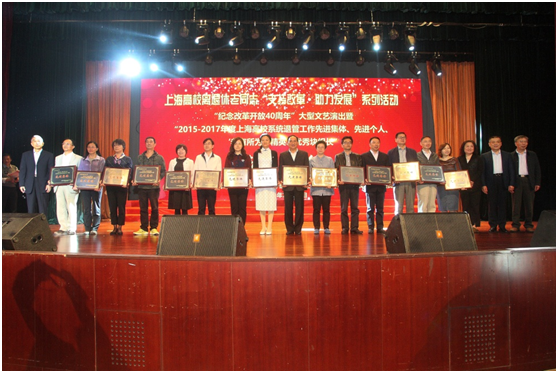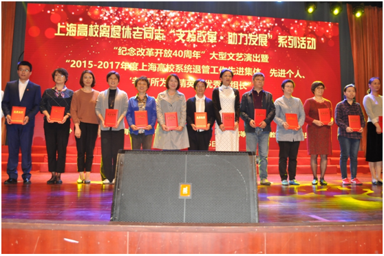 为表彰先进典型,弘扬先进精神,进一步激励上海高校系统退管工作部门和广大退管工作者奋发进取,再创佳绩,推进高校退管服务工作的深入发展。近日,由上海市教卫党委老干部处、上海市高校退管会联合主办的上海市高校系统离退休老同志“支持改革、助力发展’系列活动暨2015--2017年度先进集体与先进个人表彰大会在上海交通大学隆重举行。