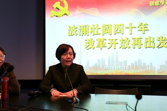 活动伊始,创意学院党支部书记方军首先介绍了开展此次主题党日的背景。她说,1978年12月18-22日,中国共产党召开了具有历史意义的十一届三中全会,作出了实施改革开放的重大决策,正如总书记所说,这是我们党的一次伟大觉醒。四十年前的今天,十一届三中全会正在如火如荼地进行,而它也深刻地改变了中国以及我们每一个人的命运。“波澜壮阔四十年改革开放再出发”主题党日就是以我们的真情实感致敬改革开放,并从总书记的重要讲话中汲取精神力量,将改革开放事业不断推向前进。