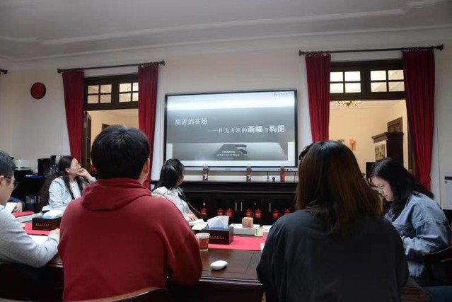 (图为《中国共产党党徽党旗条例》学习分享和《隐匿的在场》画幅与构图解读)