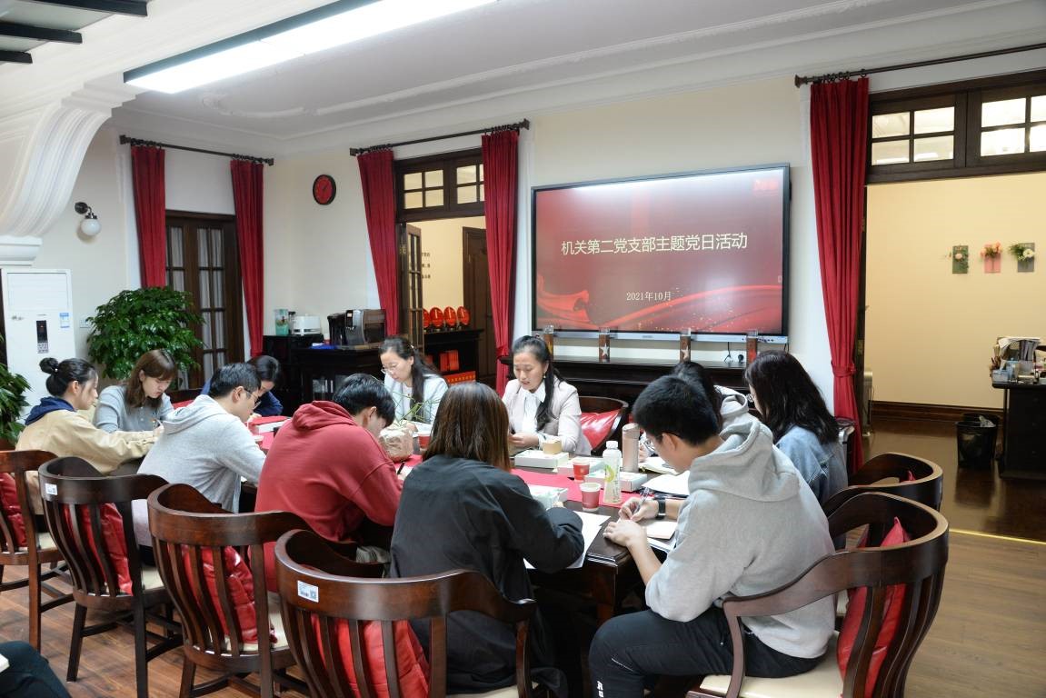为深入开展党史学习教育,贯彻落实上海高校党的建设工作会议精神,明确党徽党旗使用规范,10月29日下午,机关第二党支部在华山路校区党建服务中心、教师发展中心举行10月份主题党日活动。活动由支部书记徐莹主持。