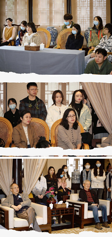 11月5日下午,上戏师生到达枫泾古镇,先后参观了枫泾古镇历史街区、丁聪美术馆,并考察了枫泾农民画村。浓郁的人文艺术气息,优美的江南古镇景观,让年轻的编剧们在这里捕捉剧作灵感,共同寻找着戏剧性要素。当天晚上,师生们以社会景观为主题,结合自身经历与专业要求,畅谈观感,共话人生的戏剧、戏剧的人生。