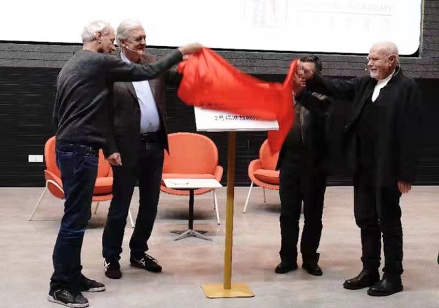 上海戏剧学院电影学院总支书记韩永胜主持了揭牌仪式。电影学院院长厉震林热情致辞,电影学院学生吴晨曦代表同学们发言。上海大学电影研究中心艺术总监、威尼斯国际电影节前主席马可·穆勒先生,上海戏剧学院电影学院教授、原美国电影学院院长扬·舒特先生,上海戏剧学院电影学院教授、世界摄影师协会前主席基斯·范·奥斯特鲁姆先生共同为电影学院2号标准放映厅揭牌。