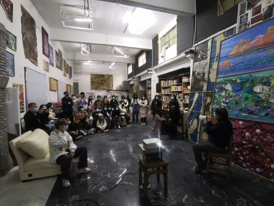 11月11日,创意学院部分学生在党总支副书记唐芳、韩生教授、徐国峰副教授的组织下,前往上海青浦区金泽镇上的胡项城文化艺术工作室进行沉浸式学习,探访著名艺术家胡项城先生,聆听了他对于我们需要什么样的当代艺术这一问题的思考。这也标志着创意学院“艺术家课堂“系列项目正式开启。