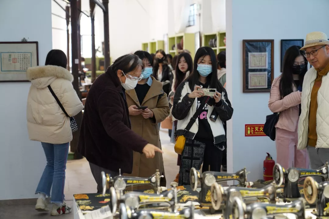 在此次学习过程中,胡项城先生带领师生参观了三个特色展馆。第一个展馆中布满古朴而精致的古建筑物残片,屋檐小角、门框、栋梁、雕刻工具等承载着匠人经年技艺的见证物沉浸于此;第二个展馆里储存了昔日上海大大小小常见的日常用品,如:沙发、收音机、缝纫机、服饰、年画等,充满浓郁的民众生活气息与儿时的记忆之中;第三个展馆中陈列织布机、水车、厨具、布匹、农耕用具等,让质朴的农作生活宛如画卷般展开。