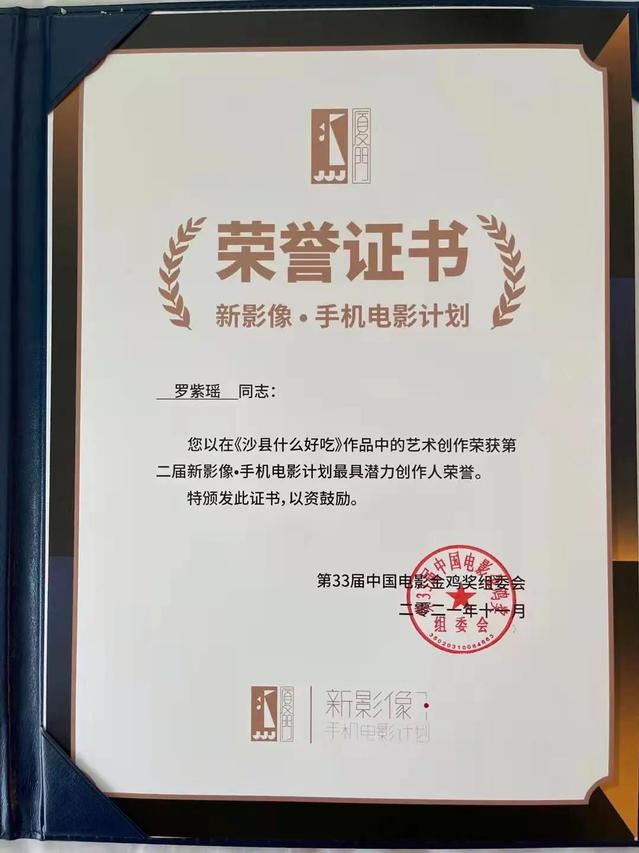 12月30日,从美丽的海滨城市厦门传来喜讯:由上海戏剧学院电影学院2019级影视导演MFA罗紫瑶同学所创作的手机电影《沙县什么好吃》,被第34届中国电影金鸡奖组委会授予第二届新影像·手机电影计划“最具潜力创作人”荣誉。