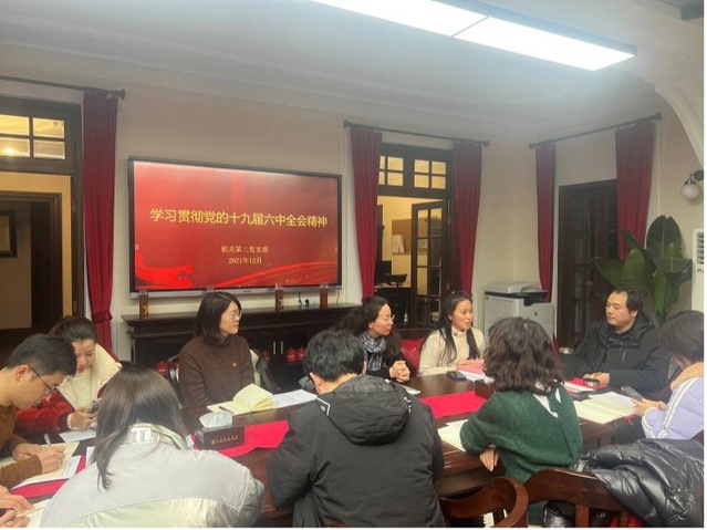 为深入学习贯彻党的十九届六中全会精神,重温中国共产党的百年奋斗历程,总结党的百年奋斗重大成就和历史经验,12月30日,机关第二党支部开展“学习贯彻党的十九届六中全会精神”主题党日,由支部书记徐莹主持。