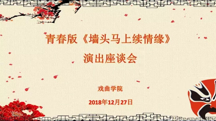 12月27日,戏曲学院召开青春版京剧《墙头马上续情缘》演出座谈会,对该剧的学习及排演过程进行梳理总结。会议由戏曲学院副院长黄暾炜主持,戏曲学院院长李佩红出席会议。