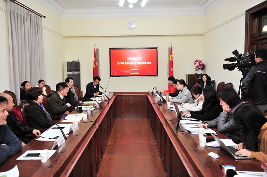 2019年1月8日上午,我校在佛西楼一楼会议室,召开2019年上海戏剧学院本科招生考试新闻发布会。院长黄昌勇、党委副书记胡敏、副院长刘庆及舞美系主任伊天夫,招生办公室主任刘志新,表演系主任何雁,党委办公室、院长办公室副主任、党委宣传部副部长包立峰,招生办公室副主任王绚出席发布会。