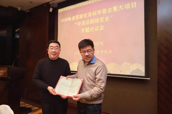 进入特邀嘉宾代表发言环节,叶长海教授充分肯定陈军教授标书的立意和论证,对标书的每一个问题都给予充分的回应,思维缜密,论证有力,并结合个人的经验,从课题推进的角度,提出了研究、管理和经营方面的合理化建议。张福海教授则强调“中国话剧接受史”意义非凡,彰显出中国观众在审美变迁史中扮演的重要角色,因为伟大的观众造就伟大的戏剧,从这个角度而言,研究话剧接受史即研究观众审美变迁史。现有的戏剧观念和意识是陈旧的,无法满足现代社会观众的需求,而百年话剧变革及其接受史足以预示未来话剧的发展方向。