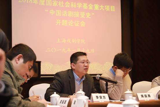 杨扬教授负责子课题二“中国话剧文学接受史”的研究,他指出,从华东师范大学调动上戏工作也存在研究转型问题,认为从文学角度研究话剧接受还有相当大的空间。话剧创作无法脱离文学的支持,就中国作家创作而论,由诗歌、散文、小说写作转向话剧创作(所谓“跨文体写作”)的作家很多,郭沫若、茅盾、老舍、莫言皆如此,优秀话剧的诞生和成长离不开文学的滋养。为什么近三十年没有好的话剧出现?与文学根基薄弱、原创剧本缺失有关,文学性在话剧当中占有突出重要的地位。中国话剧文学接受研究不是从静态,而是要从动态来看话剧创作和接受的变化。子课题成员都是上戏经验丰富的话剧研究专家,有理由相信子课题能顺利完成。