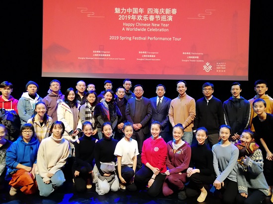 为展示中华优秀传统文化,诠释中国新年内涵,展现中华文化独特魅力,由中华人民共和国驻比利时王国大使馆主办,上海市文化和旅游局、布鲁塞尔中国文化中心承办的2019年欢乐春节巡演活动在比利时拉开帷幕。我校演出代表团受邀参加本次巡演。
