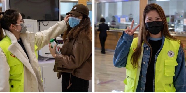 作为一名入党积极分子以及学生会骨干,在疫情突袭的时刻,我积极加入志愿者行列,穿上亮丽的志愿者马甲,为同学们做好服务工作是我义不容辞的责任。不仅仅是我们学生志愿者,当我看到学校的辅导员们,安保人员,食堂的叔叔阿姨们等等都在和我们一起努力,一起为我们的青春加油时,我感受到了团结一致,齐心抗疫的巨大力量!我也相信,在这个有些许不一样的春天,大家依旧能笑脸相迎。