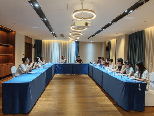 713,上海戏剧学院导演系党总支书记尹悦蓉、团总支书记周啸阳与三明学院书记苏庆雪三明学院吴碧玲和叶佳慧老师作为师生代表举行专题研讨会,围绕艺术人才培养、课程思政建设、校地协同发展青年学生工作等议题展开深入交流并具体讨论了“青麟泰宁”音乐荟的节目安排和实施方案。双方表示,将以此次合作为契机,进一步推动资源共享,探索艺术教育实践青年学生工作的深度融合。研讨会后,两校师生便展开了紧锣密鼓的排练,在排练中进一步加深了彼此的友谊