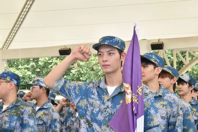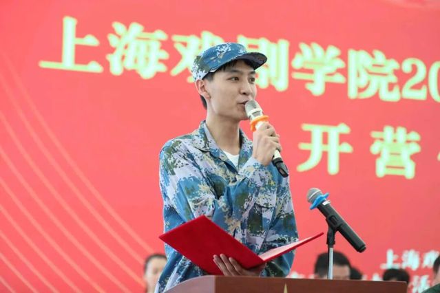 电影学院2025级新生何冠辰,代表参训学员发言。他表示,在抗战胜利以及上戏建校八十周年之际参加军训,感到非常光荣。将通过军训磨砺意志、强化担当,以实际行动传承先辈精神,开启大学新篇章。