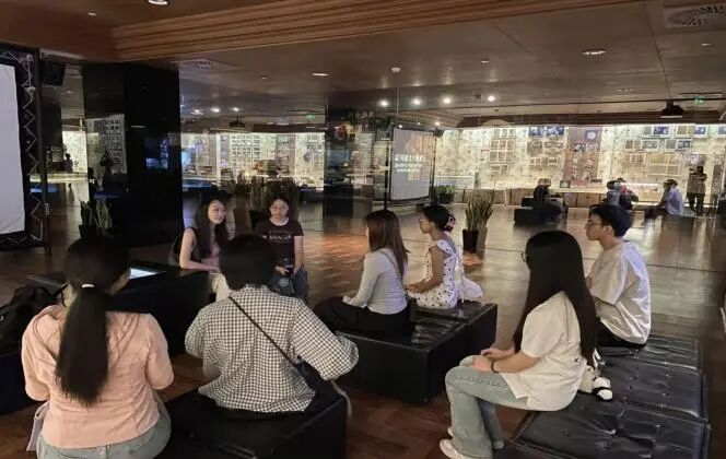 理论课程之后,程宇月博士带领学生前往上海电影博物馆开展实地教学,学生们逐层参观四层展厅,专注于寻找能够激发创作灵感的素材。在参观结束后,大家分享了各自的观展感受,并分为两组正式开启博物馆戏剧创作之旅。