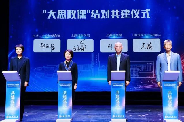 活动伊始,上海戏剧学院与多家“大思政课”结对共建单位举行了共建仪式。上海戏剧学院党委副书记、副院长徐咏,上海科技馆副馆长刘健,上海市青少年活动中心党委书记吴皓,中共二大会址纪念馆副馆长张丽韫等出席仪式。这一合作标志着上海戏剧学院在整合社会教育资源、构建协同育人机制方面取得重要进展,为新时代思政教育注入新活力。