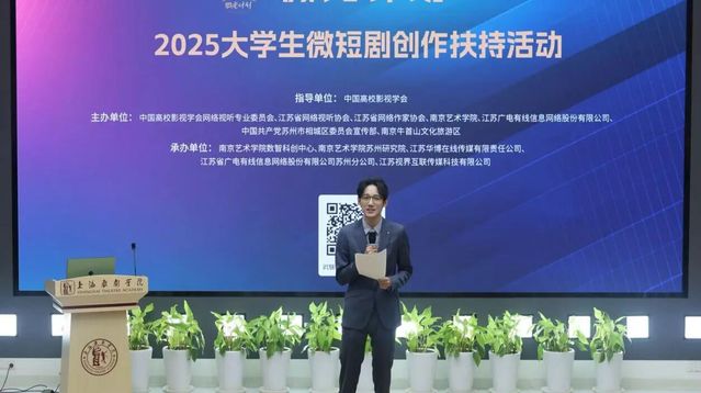 20251021日下午,“微光计划——大学生微短剧创作扶持活动”校园宣讲会在上海戏剧学院昌林路校区智慧教室顺利举行。“微光计划”由中国高校影视学会网络视听专委会、江苏省网络视听协会等主办,面向全国高校征集优秀微短剧项目。本次活动由上戏“微短剧创训营”、电影学院视听传媒创研中心承办,吸引了众多热爱微短剧创作的同学踊跃参与,现场座无虚席,气氛热烈。