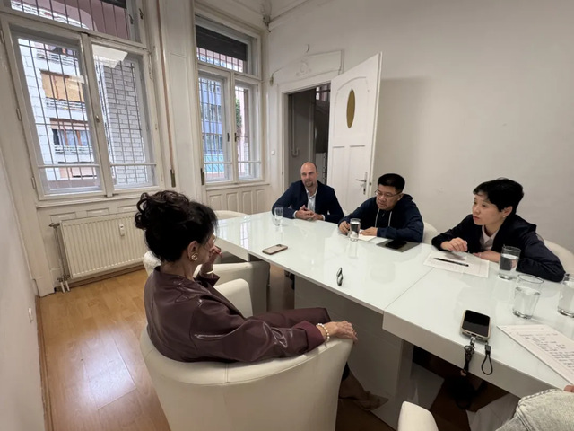 在匈牙利布达佩斯戏剧与电影艺术大学,该校校长Sepsi Eniko等多位人士与上戏代表团会面。双方分别介绍了各自学校的建立背景、学科设置、学生学习等情况,相互邀请对方学校参加学生电影节等活动,还就未来两校开展师生交流合作达成了初步意向。