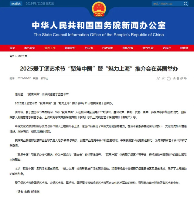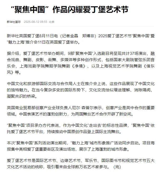 在爱丁堡,上戏舞蹈学院联合中欧国际文化创新中心、英国全球青年人才基金会等机构举办了“2025亚欧文化艺术产业发展大会”。来自20多个国家的近百位代表围绕文化艺术的国际交流与未来发展、亚欧国际文化交流市场机制、跨文化艺术发展趋势等核心议题展开深入研讨,周蓓作主题发言,制作人邹蕊和青年演员董涵进行了现场展示。