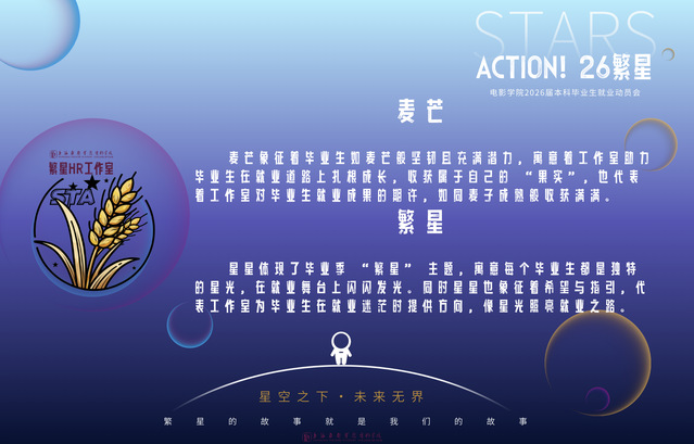 至此,上海戏剧学院电影学院“ACTION!26繁星”毕业生就业动员会暨“繁星HR”工作室成立仪式圆满完成。希望同学们以本次活动为契机,明确方向、积极行动,在职业赛道上绽放专业光彩,“繁星HR”工作室也将充分发挥平台作用,助力毕业生找到未来的方向。