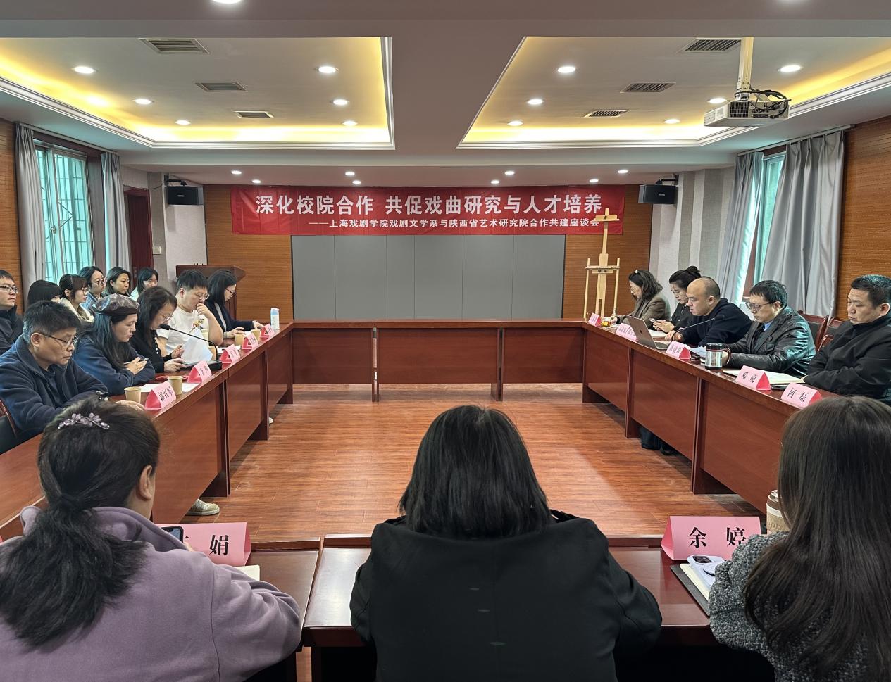 诞生于延安的陕西省戏曲研究院具有深厚的红色基因,在院史陈列室,师生们了解到习仲勋等老一辈党和国家领导人长期以来对戏曲艺术所给予的亲切关怀。在随后举行的座谈会上,陕西省戏曲研究院党委副书记郑宁莉,副院长、纪委书记郝卫等,介绍了在文化旅游繁荣的西安,该院如何以戏曲活化文旅场景,推出秦腔版《上春山》并通过新媒体广泛传播等鲜活案例,以及院团与艺校合作以订单模式培养秦腔艺术接班人的情况。