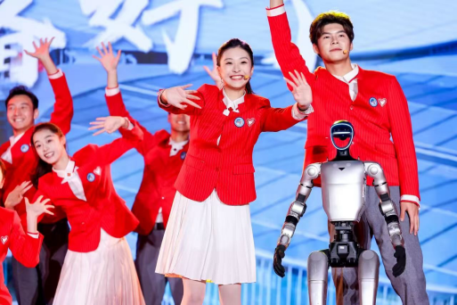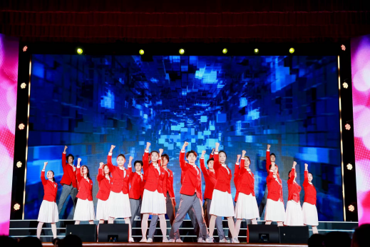 上戏舞蹈学院在仪式上表演的开场舞蹈《年轻的力量》,打破传统框架,创造性地引入人机互动表演。舞者们柔美的身姿与机械臂的精准律动相映成趣,在舞台上描绘出一幅充满未来感的画卷。传统与现代、人文与科技在舞台上巧妙融合,不仅展现了舞蹈艺术的无限可能,更寓意着拥抱时代、勇于突破的精神风貌。