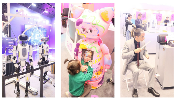 在机器人乐园,上戏志愿者配合观众与机器人频频互动,让更多人真切感受到前沿科技魅力;在未来生活方式区,他们耐心地为观众答疑解惑;在手工工作坊内,他们悉心协助,让“人人皆可DIY机器人”的梦想照进现实;在“模速食堂”专区,他们激情演绎,炒着“有温度”的菜,为观众提供不一样的情绪价值。