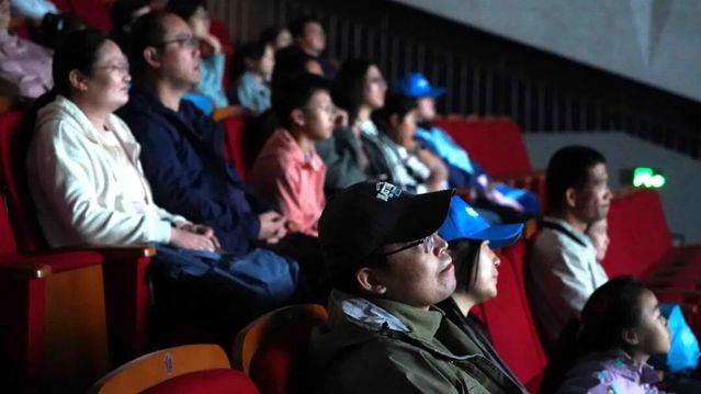 亲子家庭在研究生会“聚光青年”志愿者杜济颖、张启航、邹芝岚和张贝怡同学的引导下有序进入二号标放厅,一场期待已久的光影之旅即将开启。随着灯光渐暗,由电影学院学生拍摄的《恐龙蛋事件》缓缓放映,奇幻的情节、细腻的镜头、充满想象力的表达,让孩子们时而睁大眼睛惊叹,时而小声与身边的家长分享感受,家长则静静陪伴,从孩子专注的神情中,捕捉着艺术启蒙的珍贵瞬间。