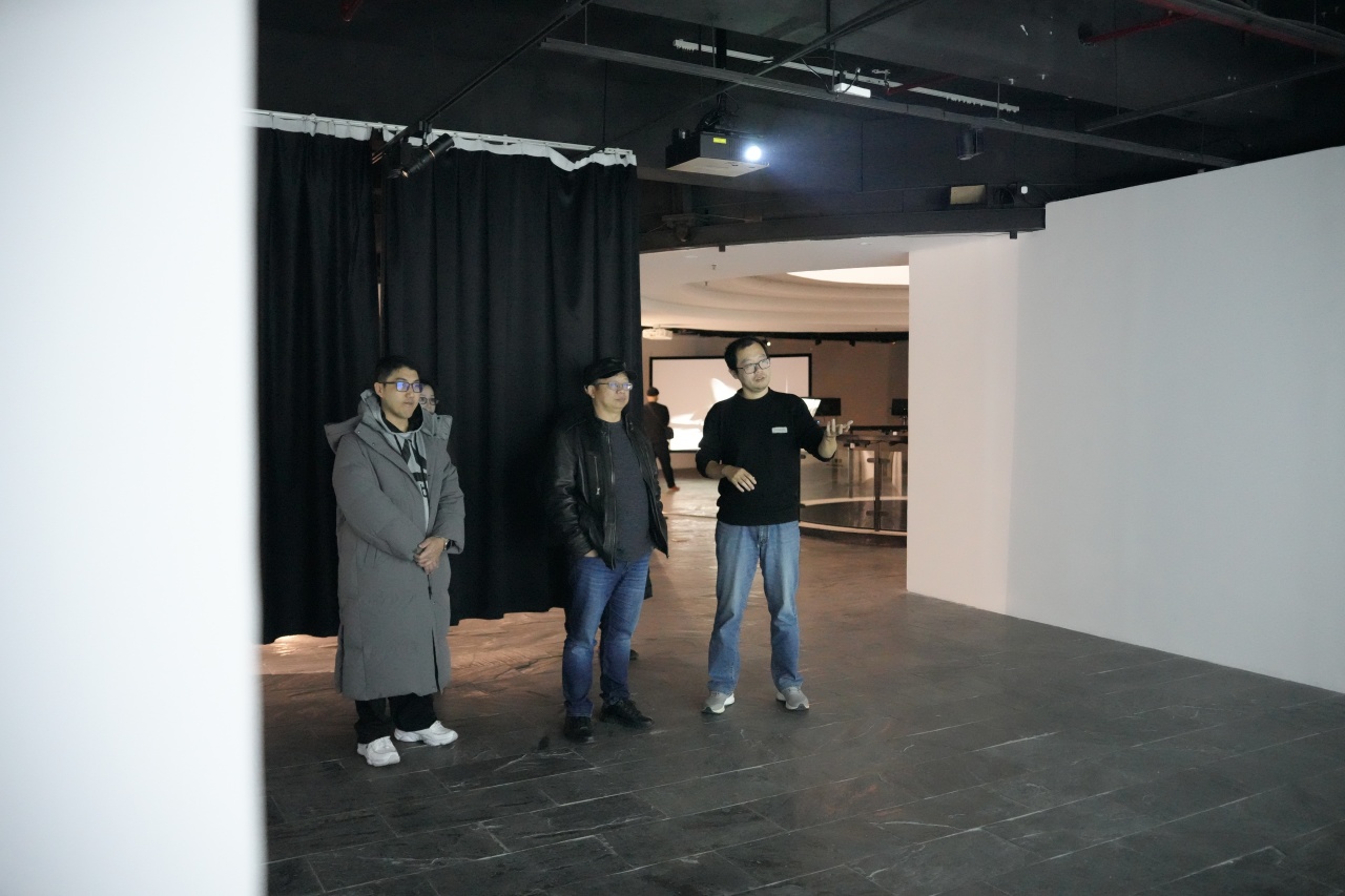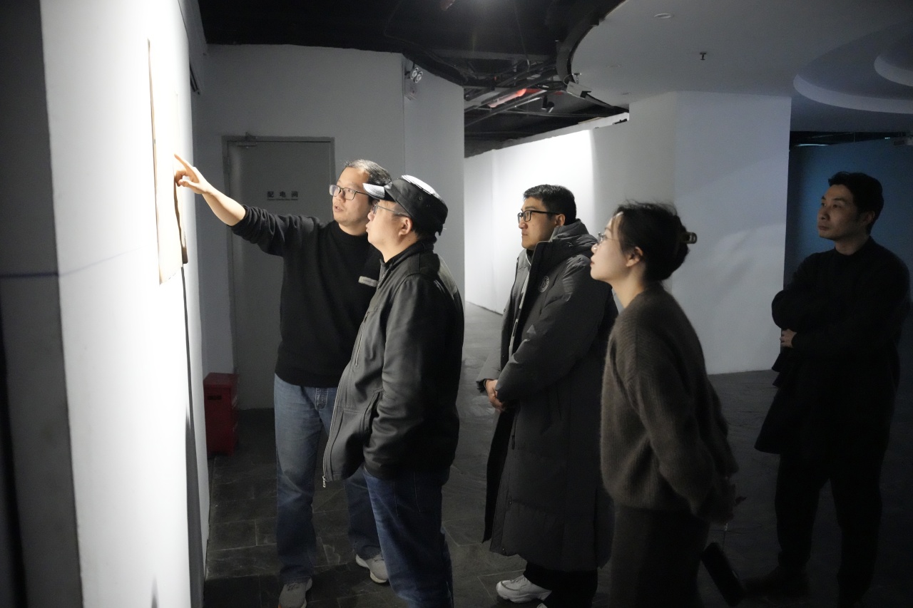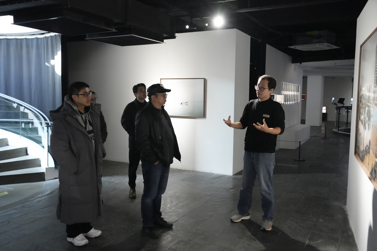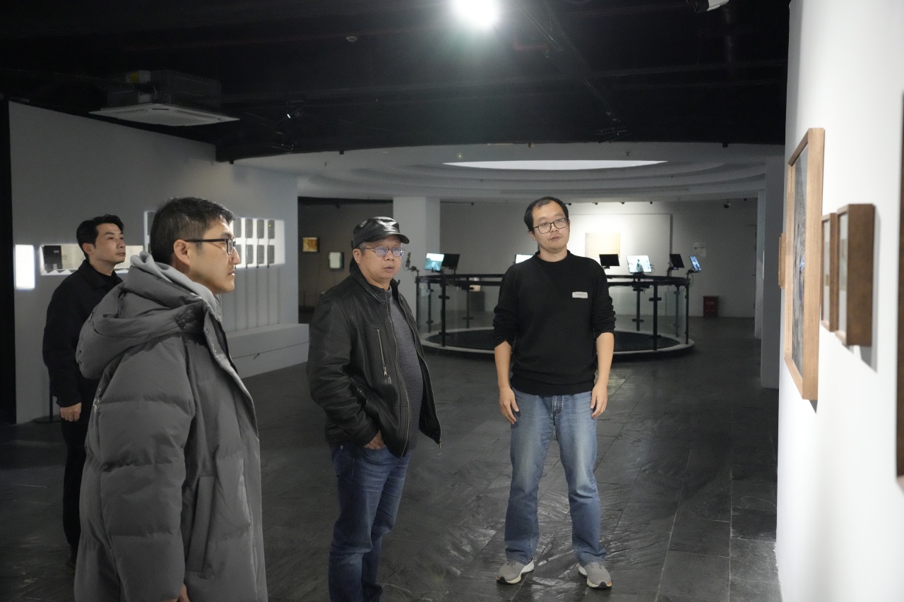 美术馆策展部李艺为上戏戏文系主任沈亮、副教授李旻原导览