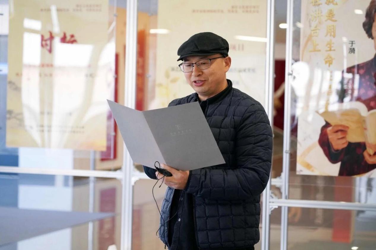 活动最后,全体人员在党总支副书记薛嘉的引导下步入展区交流观展。展览围绕教育楷模事迹,打造了手绘、影像、AI文创、VR体验四大板块。