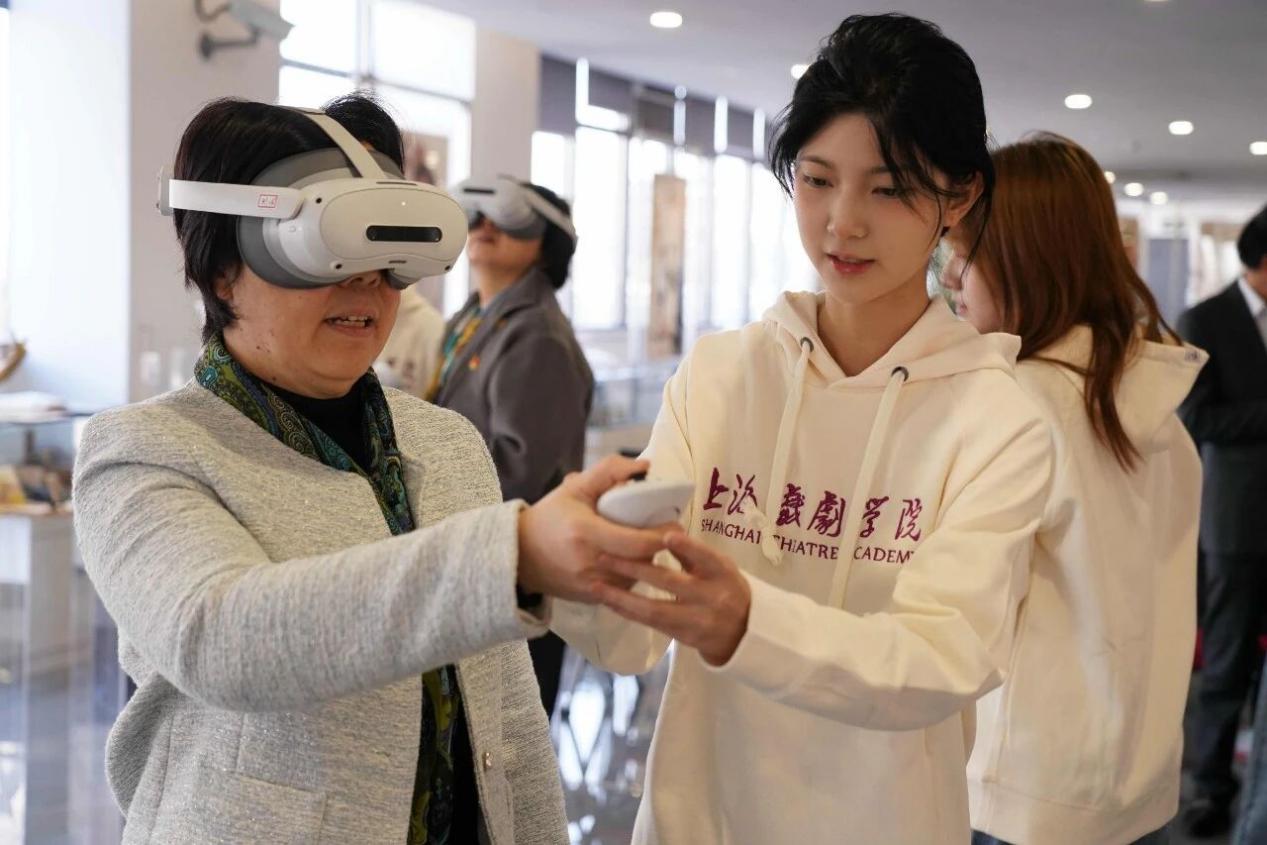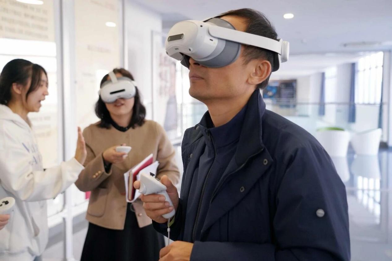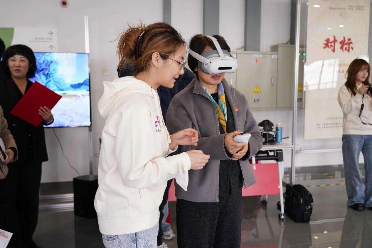 师生原创手绘、AI视频、可互动文创卡片错落有致,特别是VR体验区,让参观者得以沉浸式走进楷模世界,使抽象的精神内涵变得可感可触。