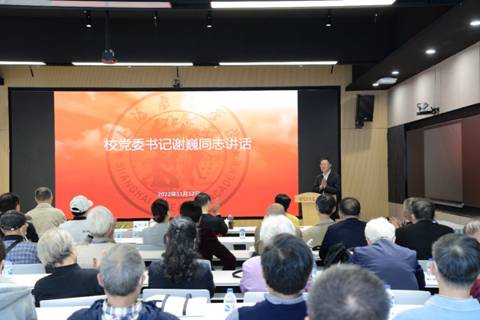 学校党委书记谢巍代表学校党委向老教授协会四年来所做出的努力和贡献表示衷心感谢和崇高敬意。谢书记也热烈祝贺新一届理事会的产生,向李建平会长、各位理事、各位会员表示敬意。他希望新一届老教协能够组织老教授们按照市老教协的要求积极参与各项工作,能够在上海市老教协平台、在上海更大的舞台上展示我们上戏老教授的风采;希望我校老教协能更加结合学校的中心工作,在学校党建、教育教学、科研创作等各个领域,进一步发挥作用,积极建言献策;也希望老教授们能够保持心情愉悦的情况下,更多地参与学校的工作、社区的工作。