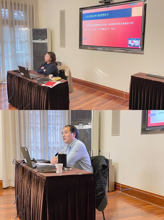 当天下午安排的第二讲和第三讲党课分别为创意学院党总支书记方军老师讲授的《红色资源运用与新思想学习》和人文社科部党支部书记施华东老师讲授党的二十大精神专题讲座《学习二十大报告 领悟二十大精神》。