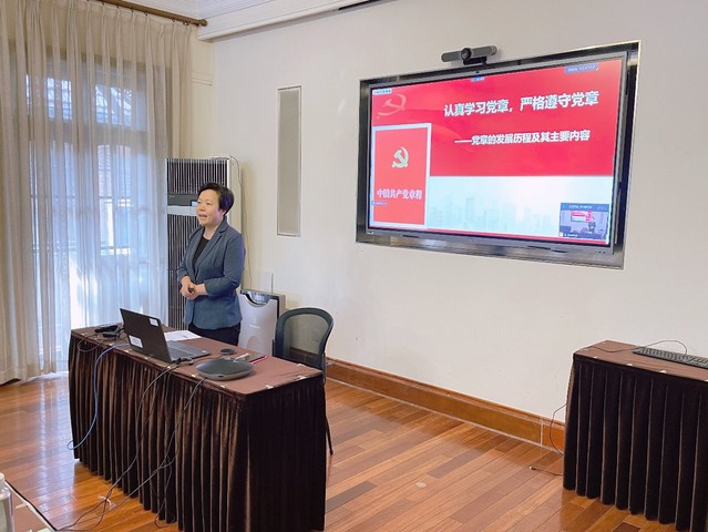 党委副书记胡敏老师开启了党训班的第一讲,她以 “认真学习党章,严格遵守党章”为题,向党训班的师生介绍了中国共产党章程的重要地位,对党章的发展历程、基本架构和重要修改内容进行了系统的阐释。胡敏副书记运用大量历史史料和精彩案例,为学员们进一步坚定理想信念提供了很好的启发和教育,同时也对学员们寄予了殷切的希望。