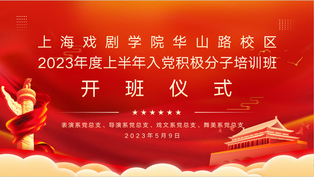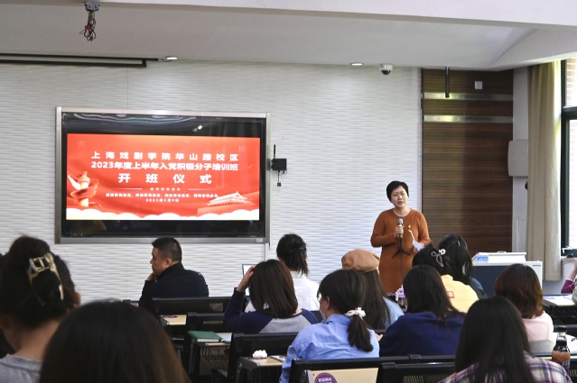 为深入学习贯彻习近平新时代中国特色社会主义思想,切实加强新形势下学生党员发展对象的教育培养工作,加深对入党积极分子的培训工作,深化党的基本理论、基本路线、基本纲领和基本经验教育,进一步提高入党积极分子的基础理论素养,华山路校区(四院系)入党积极分子培训班开班仪式于2023年5月9日在红楼209教室举行。按照学校党委部署,华山路校区本轮培训班首次由表演系、导演系、戏文系、舞美系四所院系联合承办,四院系党总支精心组织策划,打破院系壁垒,压实在入党积极分子培养考察过程中的工作责任并充分发挥各自优势特色。党委副书记、副院长张伟令,党委组织部专职组织员曹颖,四院系党总支书记、副书记、辅导员和51名入党积极分子参加了此次开班仪式。开班仪式由导演系党总支书记尹悦蓉老师主持。