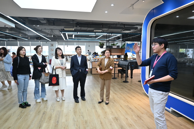 在哔哩哔哩党委办副主任徐逸凡的接待下,师生共同参观了哔哩哔哩三楼的公共空间和党群服务站,感受哔哩哔哩的企业文化。作为一家年轻、开放、有活力的企业,B站注重员工的工作和生活平衡,为员工提供人性化的服务。作为最受年轻人欢迎的互联网公司之一,其党建工作融入了诸多崭新元素,专利墙的个性化设计、以动漫人物传播榜样力量等形式别致新颖,给年轻人以亲切之感。