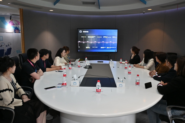 随后,双方在会议室进行了座谈交流。首先由哔哩哔哩公共事务经理何朗朗为大家介绍公司概况,B站目前是中国最大的弹幕视频网站,也是一家以年轻用户为主要受众的全媒体平台,成为了年轻人高度聚集的综合性视频社区。经过多年的发展,围绕用户、创作者和内容,构建了一个源源不断产生优质内容的生态系统,现已涵盖7000多个兴趣圈层。坚持数据真实、坚持内容品质导向、坚持在社区内部推行正向价值观,在“三个坚持”下,公司不断发展,凝聚优质创作者,营造和谐的社区氛围。