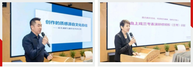 上戏艺术创作中心主任魏东晓、表演系主任肖英,分别从《兰考》等剧本创作、黄河艺术团学员在上戏的学习情况等角度,畅谈了上戏在弘扬历史传统、服务社会发展、传承时代精神、培育文化新人、扎根现实题材、推进文化自信自强等方面承担的使命。