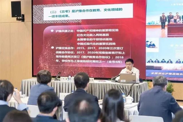 在这堂专题党课上,黄昌勇系统地梳理了党的十八大以来,习近平总书记关于文艺工作所作的重要论述。在文艺工作座谈会、中国文联十一大和中国作协十大开幕式等多个场合,习近平总书记都反复强调了文艺与人民的关系、文艺与时代的关系,提出了关乎社会主义文艺事业发展的一系列重大命题。黄昌勇回忆自己在创作《兰考》的过程中,多次深入学习习近平总书记关于文艺工作的重要论述,并带领团队一起学,深刻感受到习近平新时代中国特色社会主义思想的巨大魅力。对习近平总书记重要论述的学习和领会,为明确创作方向,找准创作角度,提供了重要依据。文艺创作一定要紧跟时代谋创作,要融入大局谋发展,要反哺教学谋成效。他指出,《兰考》是对习近平总书记关于文艺工作重要论述精神的一次践行;《兰考》是传承红色基因,讲好中国故事的一次探索;《兰考》是沪豫合作在教育、文化领域的一项成果;《兰考》是根植上戏70多年传统的一次创新。