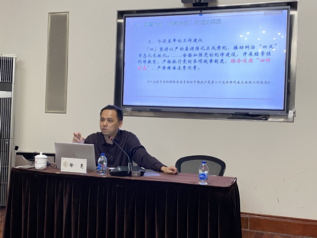 为深入学习贯彻习近平新时代中国特色社会主义思想、党的二十大、二十届中央纪委二次全会、上海市纪委二次全会及上海市全面从严治党警示教育大会相关精神,努力提升学校专兼职纪检干部综合能力,根据培训计划,5月17日,学校纪委(监察专员办公室)邀请上海市纪委监委第四监督检查室主任徐亮为全校专兼职纪检干部作《精准运用监督执纪“四种形态”》专题报告。受学校党委副书记、纪委书记、监察专员周银娥同志委托,报告会由校纪委副书记刘春友同志主持。