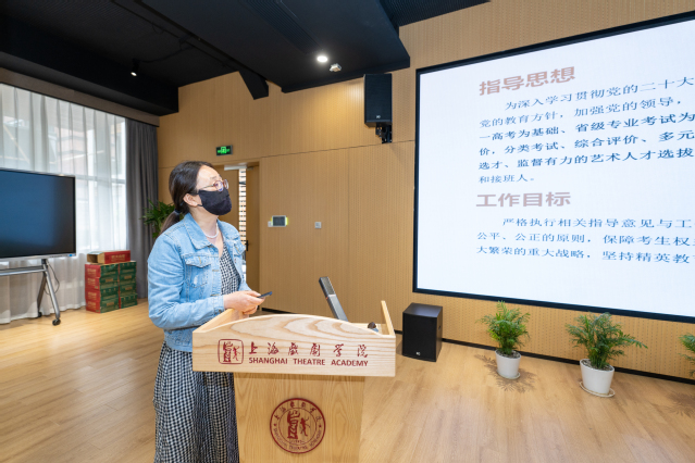 在讲座之后的研讨交流环节中,校发展规划办公室、学科建设办公室、教学质量监督与保障办公室主任吴爱丽,以“凝聚共识谋划未来”为题,分享了构建“工字形”学科布局及建设具有上戏特色的学科体系的思考,分析了学科建设对招生工作的影响和要求;校招生办公室主任郭辰艳汇报了艺考新政下我校招生工作的指导思想、工作目标及近年招生情况,针对“招生规模呈扩大趋势,招考类型逐年增加,招生工作要求不断提高”的发展局面提出应对方法和措施;附属舞蹈学校校长吴洁分享了舞校招生工作的经验体会,提出未来要加大宣传筑巢引凤,科学规划提赋质赋能,规范管理促进公平,放眼国际展望未来,构建与办学定位和特色相适应的艺术人才培养体系,使舞校传承生生不息。