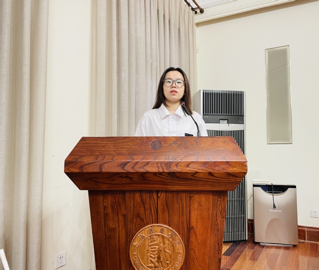 经过一个多月线上线下课程学习、分组讨论交流、组织生活实践、理论知识测试等一系列教育培训,到场的26位同学都获得了不同程度的成长。首先,许佳玮同学作为全体发展对象的代表上台发言,她感谢党组织给予大家此次宝贵的学习实践机会,培训课程帮助全体发展对象对照党员标准检视自身缺点和不足,端正入党动机,自身素养得到进一步提高。她还表示虽然培训班已结束,但作为新时代的青年人,学习是永无止境的,全体发展对象应该努力使自己成为一名坚持不懈、实事求是、乐观自信、意志坚强的新时代青年党员。