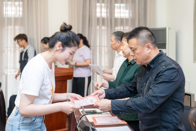 接下来是整个活动最重要的环节——颁发入党志愿书及发展对象培训班结业证书。《中国共产党入党志愿书》是每一位发展对象表达自己加入中国共产党的愿望和决心的重要文件,也是忠实记载党组织对发展对象进行入党审批过程的重要文件,代表着同学们即将正式步入党的大门,肩负起党员的使命和责任。同学们在接过入党志愿书的一瞬间也感受到了其沉甸甸的分量。
