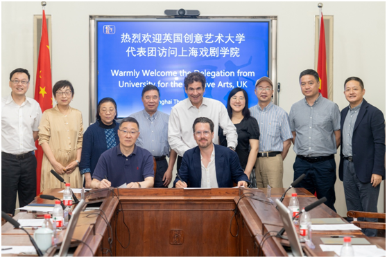 6月27日,英国创意艺术大学负责全球项目的副校长Terry Perk先生携董事会主席Jeremy Sandelson先生,与横店集团副总裁王虹先生等一行共同访问上海戏剧学院,并与上海戏剧学院党委书记谢巍进行了亲切友好的会谈。国际学院院长宫宝荣、规划办主任吴爱丽、电影学院院长厉震林,以及国际交流中心主任张云蕾等参与会议。