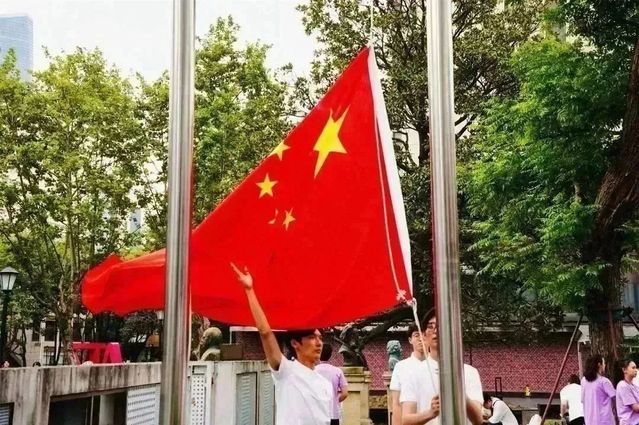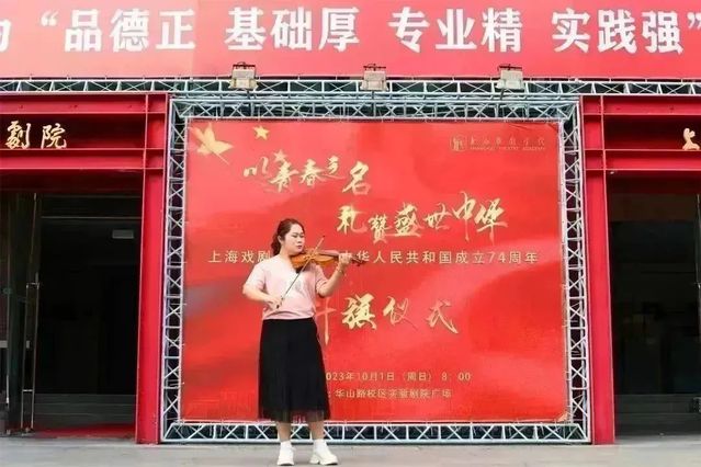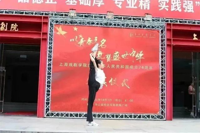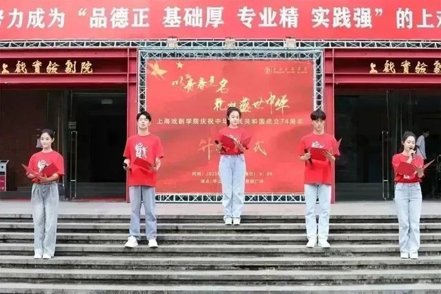 上戏昌林路校区,10月1日上午也举行了庆祝国庆74周年升旗仪式。