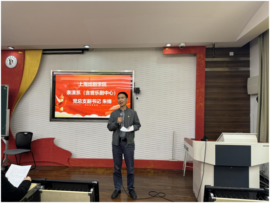 首先,表演系党总支副书记朱锋老师介绍党训班的日程安排与纪律要求。朱老师介绍道,按照学校党委具体的指导和部署,培训班的授课形式分为以下几种:专题讲座、分组讨论、在线学习、实践锻炼、撰写体会考试等。课程将紧紧围绕习近平新时代中国特色社会主义思想、形势政策教育、党的百年奋斗重大成就和历史经验、党章党规党纪和党的基本知识、党员入党的流程、以及理想信念教育、爱国主义教育、党性修养的提升等全方位的内容来教育和引导入党积极分子,帮助入党积极分子了解掌握党的基本理论、基本路线和基本方略,不断地端正入党动机。除此之外,朱老师还详细介绍了课程安排、考勤规范、考试安排等其他事项。
